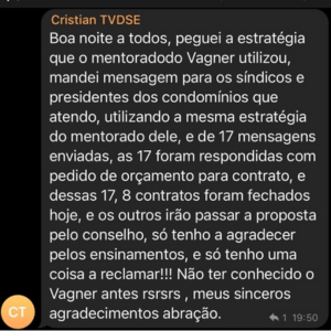 Fazia menos de duas semanas que o Cristian estava utilizando as técnicas do método VDSE, e com esse foco, em um intervalo de uma semana ele conseguiu fechar 11 contratos recorrentes.