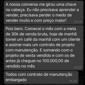 O Elivelton tinha a meta de atingir os 30K de faturamento, como ele mesmo fala. Após uma conversa e algumas orientações, ele ultrapassou 3 vezes esse valor.