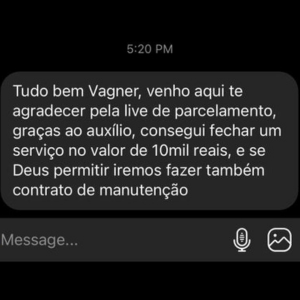 Depois de acompanhar um único conteúdo rápido, ele aplicou as técnicas e fechou um orçamento de R$ 10.000, com contrato de manutenção em negociação.
